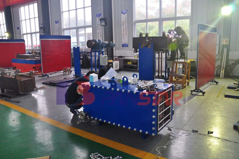——派斯特全焊接板式换热器 ![]() 优势: 派斯特板框式全焊接换热器结合了板式换热器与管壳式换热器的优点,既保持了传统板式换热器传热效率高、结构紧凑、耐高温、密封性能好、安全可靠等优点,又可以在更高的压力和温度条件下使用。适用于蒸汽冷凝和液液换热等工况,特别适合电力、石化、焦化、制药、冶金、制冷、纸浆造纸工业等行业特殊介质的换热需求。 通过流程的合理设置,保证了设备传热效率与阻力损失的合理匹配,壳体采用六面体可拆卸结构,还能满足设备内部进行机械清洗和化学清洗的工艺需求。 ![]() 全焊特点: 1、结构紧凑、占地面积小、换热效率高、承压能力高(最高可达4.0Mpa)、耐高温(最高温可达250~300℃)、运行可靠。 ![]() 2、传热效率高:换热器中介质的热交换是通过板束来实现的,组成板束的板片由专用模具压制成型,结构形式类似普通可拆式板式换热器,具有传热效率高,流量大,流体压降小,散热损失少等优点。 ![]() 3、灵活方便:用一套模具可压制不同长度的板片,组成不同规格板束,形成同宽度产品系列,规格型号多,选择余地大,能更好的满足工况需求。 4、适用范围广:板束及压紧板全部采用了焊接结构,能为在温度≤300℃,压力≤4.0Mpa或工作介质对密封垫片有腐蚀的场合以及易燃、易爆、有毒介质和环境要求安全性很高的生产工艺中汽体的冷凝、液体介质的冷却、升温、蒸发等工况条件下安全平稳运行。因此,既具备可拆式板式换热器的优点,又具备适用高温,高压的特点。 ![]() |